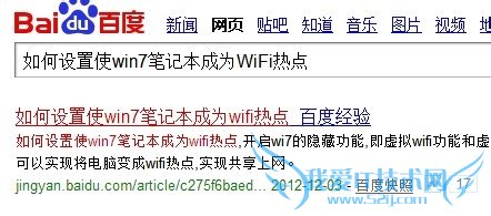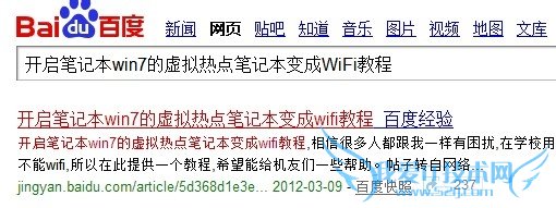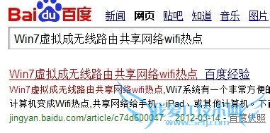 开启win7的隐藏的虚拟wifi功能和虚拟无线AP功能,便可以实现将电脑变成WiFi热点。但是此方法操作太复杂,虽然最先提到,但是小编个人不推荐,太复杂,繁琐,如果你感兴趣,想研究,可以去百度搜索“如何设置使win7笔记本成为WiFi热点”、“开启笔记本win7的虚拟热点笔记本变成WiFi教程”或者“Win7虚拟成无线路由共享网络WiFi热点”,或者直接在百度经验搜索都可以搜索到相关的介绍。