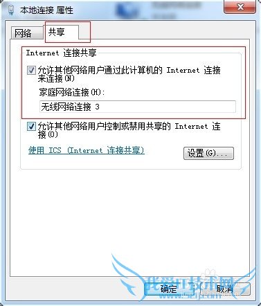 第四步、鼠标右击有网络访问的连接(本地连接或能上网的无线连接),选择属性,点击共享,勾选“允许其他网络用户通过此计算机的Internet连接”选项,然后选择刚才建立的虚拟网络并确定。