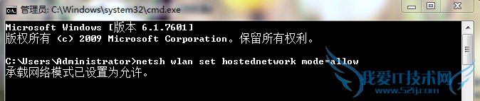 第一步、WIN键+R,在运行栏输入cmd,在命令提示符窗口输入命令:netsh wlan sethostednetwork mode=allow 开启无线共享。