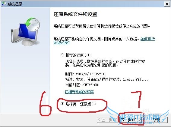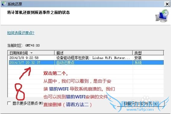 第二步:通过系统自动备份功能还原(后面会介绍不使用还原功能的方法,直接删文件)。