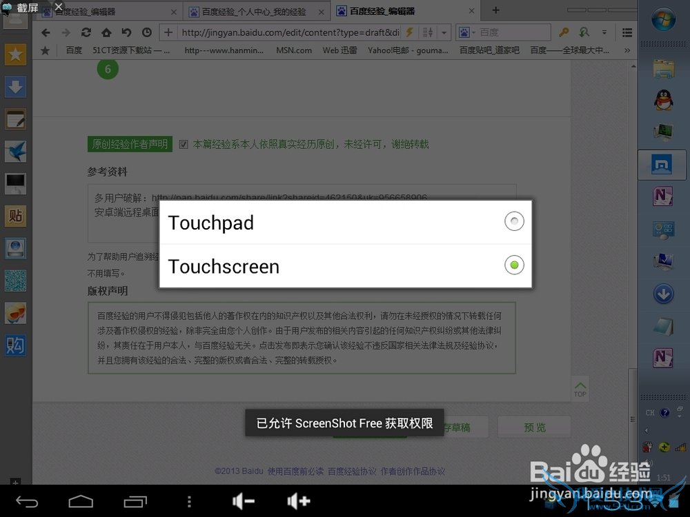 注意可以设置触摸方式。touchscreen即是像平板一样,点击意味着在那个地方单击,而touchpad则是通过光标操作。