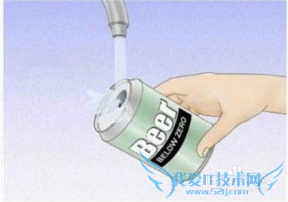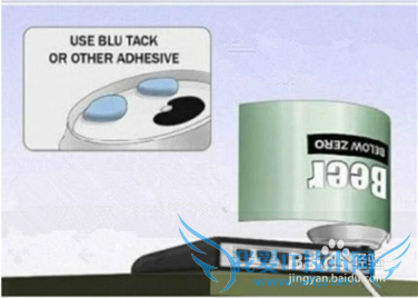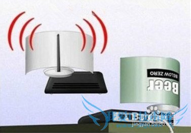 将瓶身展开成扇形,罐身倒放,将无线路由器天线插进饮水孔,罐体底座可用软胶粘连在路由器上。