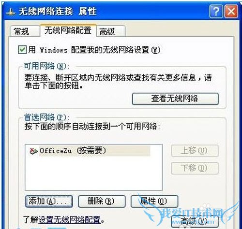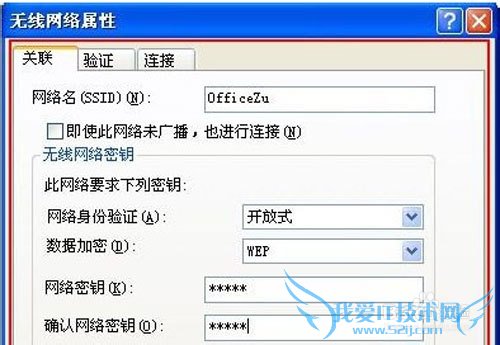 7、返回“无线网络配置”在这里我们要添加一个“网络名(SSID)”如:OfficeZu名字可以自己取,网络密钥最少设置5位数再勾上“这是一个计算机到计算机的(临时)网络,未使用无线访问点”。