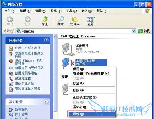 2、在弹出的“网路连接”窗口中右击“无线网络连接”选择“属性(R)”