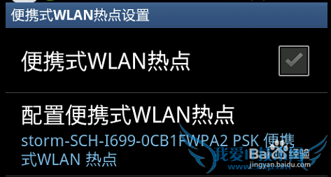 出现如下界面.我们在便携式WLAN热点后打对钩.当然,关闭的时候只要对钩呈灰色状态就可以了.
