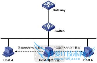 在局域网中,经过伪造的ARP广播包,黑客B伪装告诉A、C (受害者) 一个假地址,使得C在发送给A 的数据包都被黑客截取偷听,而A, C 浑然不知。