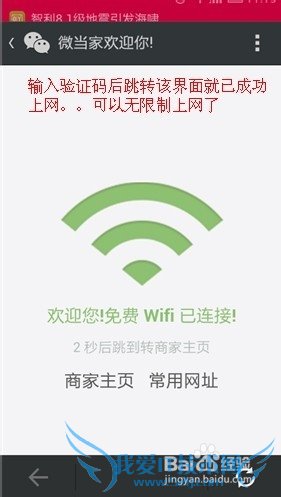 6.记住图文消息的验证码,然后再下一页面输入该验证码,点击免费上网,进入该页面wifi成功连接