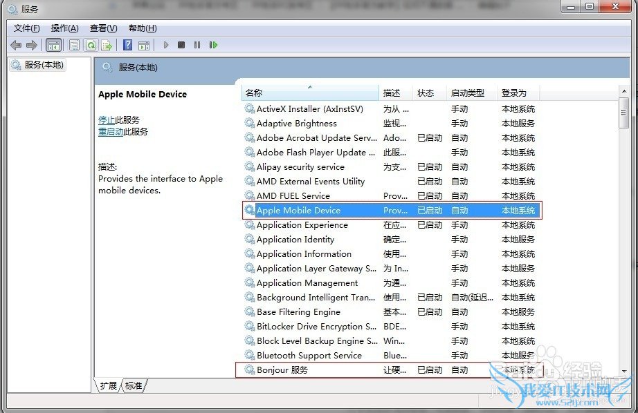 ¶þ£¬ÕÒµ½APPle mobile device ºÍBonjour ÕâÁ½¸ö£¬µã»÷ÓÒ¼ü¿´ÊÇ·ñÆô¶¯£¬µã»÷Æô¶¯¡£