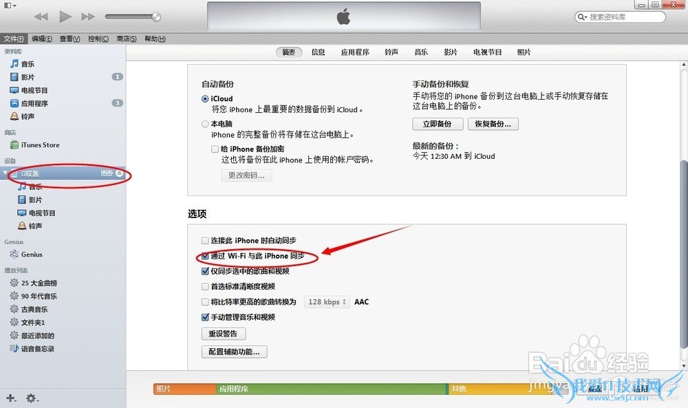 Ò»¡¢´ò¿ªiTunes£¬½«iPhone/iPad/iPodͨ¹ýÊý¾ÝÏßÁ¬½ÓµçÄÔ¡£µã»÷iPhone --¹´Ñ¡¡¾Í¨¹ýWi-FiÓë ´Ë iPhone ͬ²½¡¿--Ó¦ÓÃ