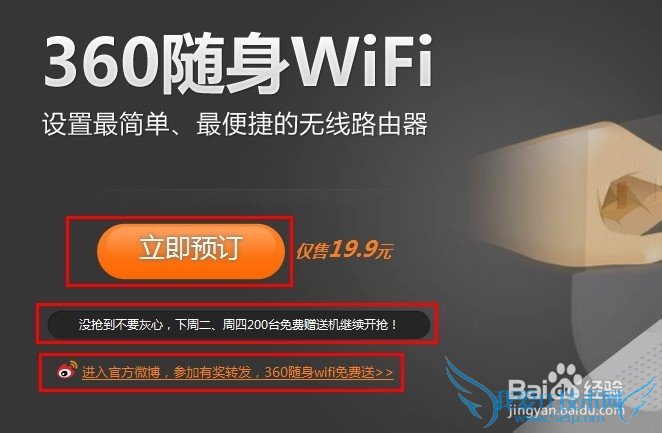 Ŀǰ£¬360²ÉÓÃÁË΢²©×ª·¢¡¢Ã¿ÈÕÏÞÁ¿ÔùËÍ¡¢Ô¤¶©µÈ·½Ê½ÏòÓû§ÍÆËÍ360ËæÉíWIFI£¬¶øÔ¤¶©µÄ·½Ê½×îΪ¿¿Æ×£¬Ô¤¶©ÆÚ¹ýºó¿ÉÄÜ»áÔÚ360¹ºÎïÍøÕ¾µÈÇþµÀÏà¼ÌÕýʽ·¢ÊÛ¡£ÏÂÃæÀ´¿´¿´ÈçºÎÔ¤¶©´Ë¿îÉ豸¡£