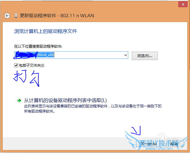 件,在搜索到的 802n无线usb网卡这个选项中,点击右键--更新驱动程序--浏览计算机,而后自动从此文件夹搜索即可(教程显示win8 32位)