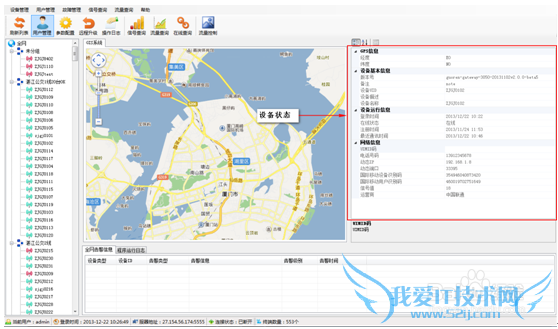 WIFI设备信息及运行状态包括,设备GPS信息、设备基本信息(软件版本、设备ID、设备名称)、设备运行信息(是否在线、在线时间、注册时间)、设备网络信息(动态IP、IMSI号、IMEI号、实时信号、运营商类型)等;设备的信号及流量还可查询历史数据库记录,也可导出报表进行统计分析;