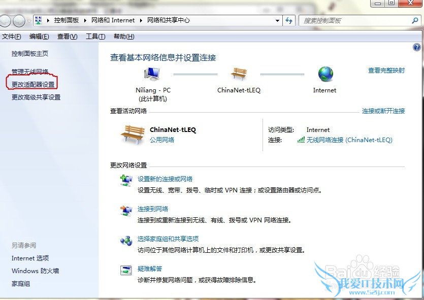 三、右键点击网络图标 打开网络和共享中心 由于我连接的是无限路由所以是这个图标 这个主要是针对用本地连接连接网络的用户(就是插网线的),本地连接用户是一个小电脑的标志