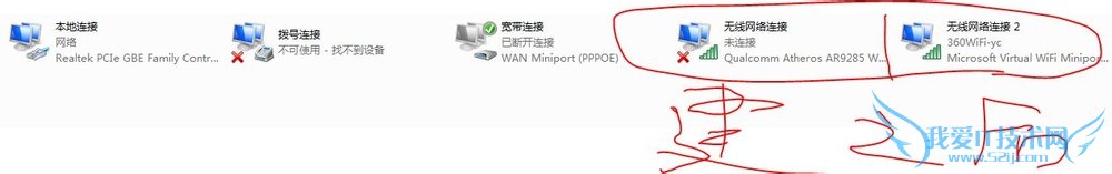 两个无线网络连接,分别是笔记本无线连接、笔记本建立的无线连接的(我是这么理解的,可以看到第二个无线连接显示360WiFi)