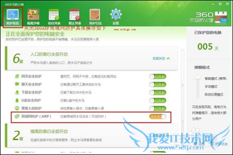 简单方法:重启下wifi共享精灵和关闭360等防护软件对局域网的限制,后者操作如下:右击360图标点解右上角进入关闭ARP防御,如图