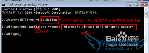 如果你知道文件路径,系统位数按照下面输入最后回车(2行回车)。就可以把虚拟网卡删掉。在打开软件点启动。一般软件就可以启动成功了。