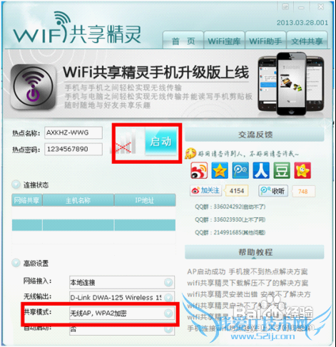 WIFI共享精灵界面,高级设置-共享模式-无线AP wpa2模式。启动不了请按以下操作!