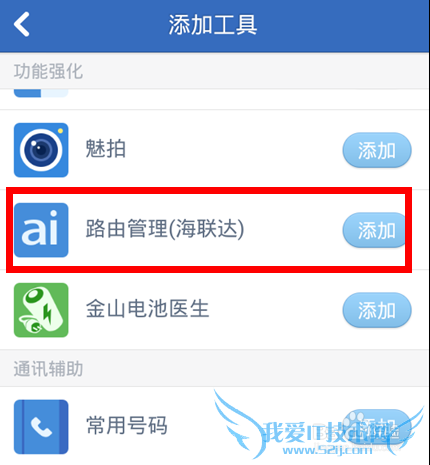 2,打开工具箱后,继续下一步,点击【添加工具】,然后在工具里面找到【路由器管理】这个功能,点击添加,然后会自动下载安装一个工具