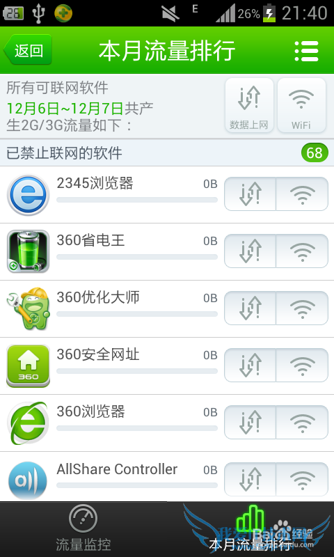 4、点击数据上网或者wifi上网即可。就可以设置是否允许您手机中的软件可以上网了。
