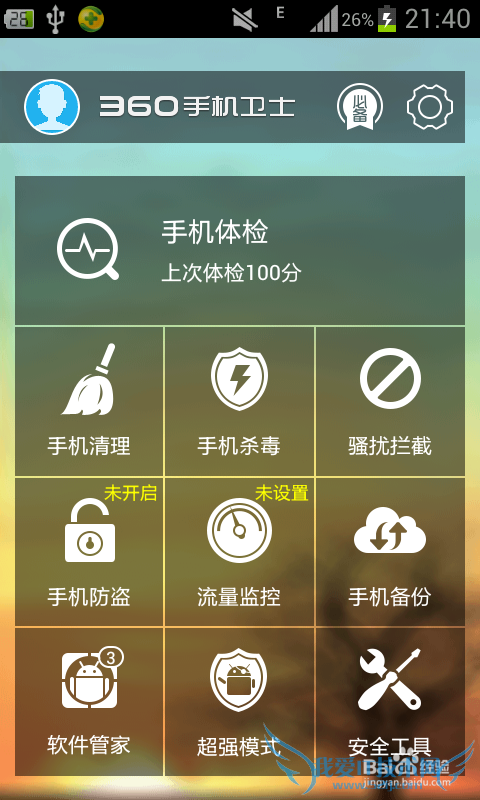2、打开杀毒软件的超强模式,以我的手机安装的360为例,在第三行第二个。