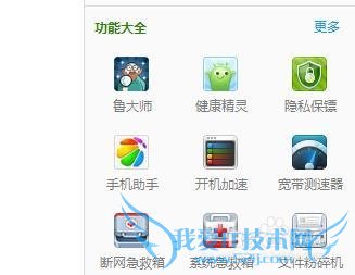 1、打开360卫士。找到功能大全里的“断网急救箱”。(如果没有断网急救箱,平时能上网时可以在“更多”那里面下载)
