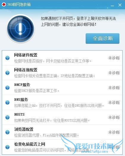 2、打开“断网急救箱”后可以看到菜单,按“全面诊断”