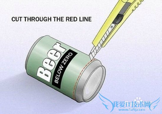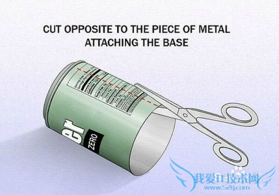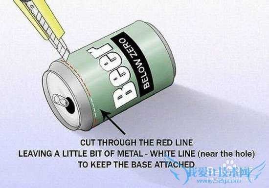 第五步,在所留白线的反面垂直画一条红线,沿红线剪去铁皮