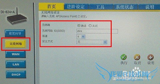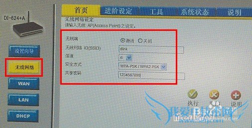5.配置路由器“无线网络”,设一个方便识别的“无线网络ID”,根据需求设置密码或不设密码(有客户时接待人员打开电源,方便客户接入,客户走后,直接关闭电源即可);