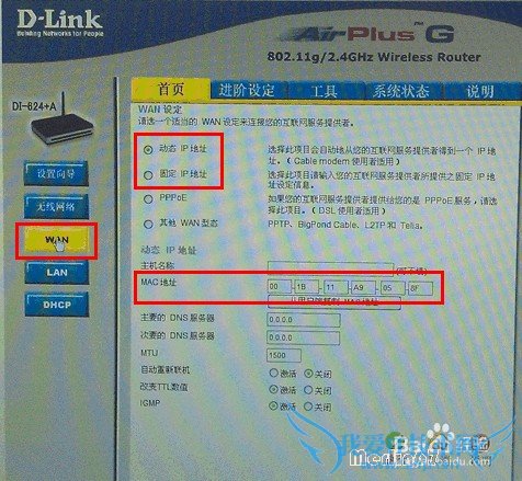 根据自己网络环境选择“动态IP地址”或“固定IP地址”;并记下MAC地址,在企业主路由器中设置,允许相应IP地址及MAC地址能正常上网(建议绑定相应IP地址和MAC地址);