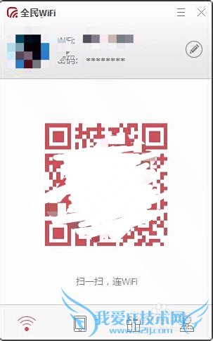 3.热点创建完之后,大家可以看到在主界面中出现了一个醒目的红色二维码,这个是全民WiFi特有的扫码连接。