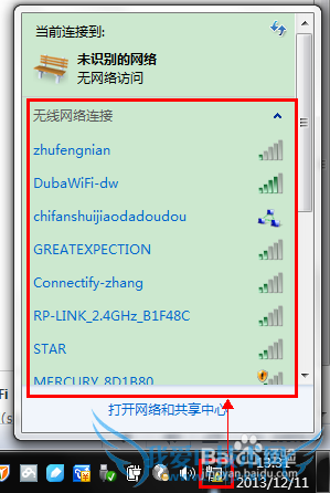 ,“无线网络连接”里 面出现多个附近的WiFi名称,说明笔记本可以正常搜到附件的WiFi热点。否则很有可能你的无线网卡并未开启。