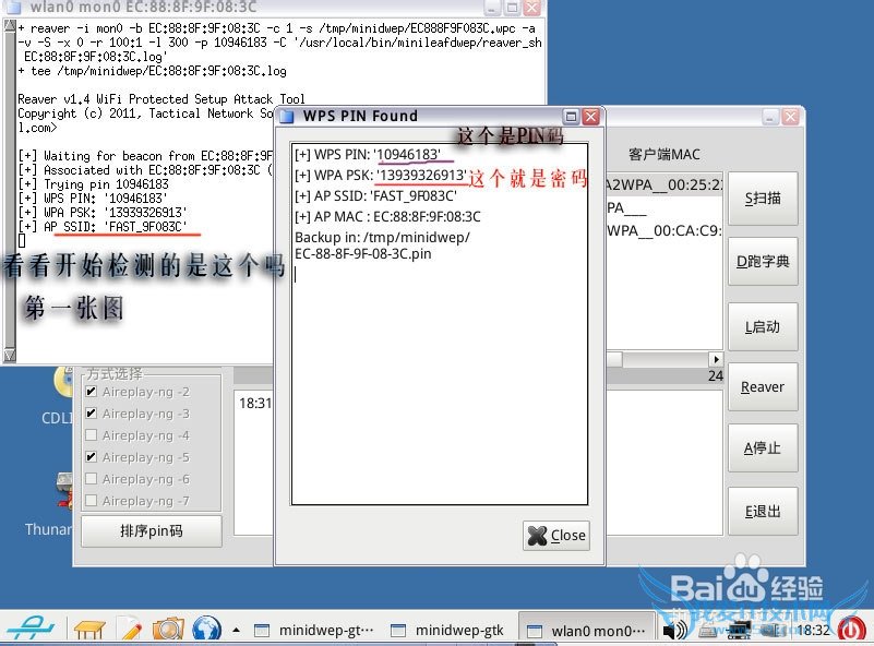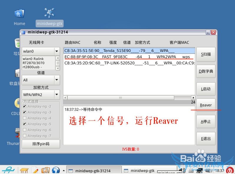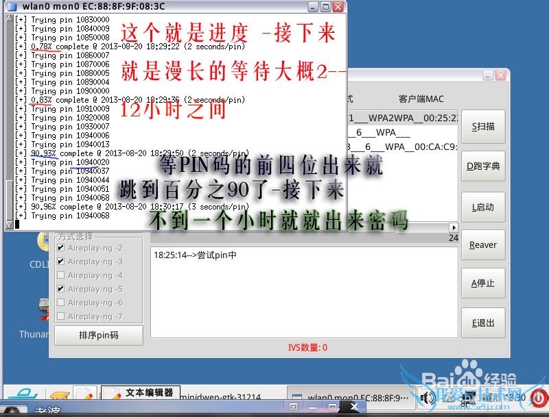 点击reaver,记得要点击3次才能真正的破解笔记本wifi密码!!!