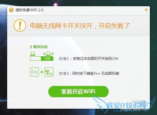 我给大家分享一下自己实测的经验。打家打开猎豹免费WiFi的时候可能碰到这种情况