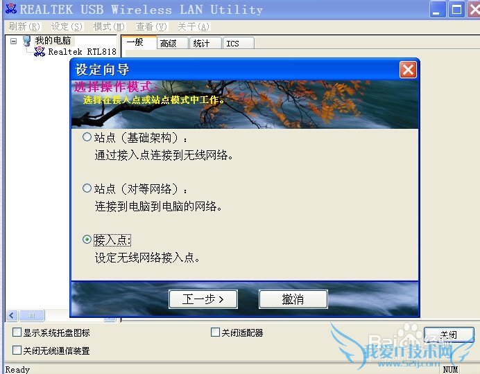 再点击“设定”--“接入点”-“下一步”--“正常用户”-“wep”---下一步
