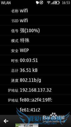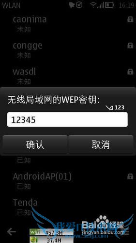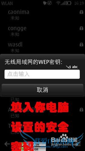 9.接下来你用手机搜索你设置的WIFI 名。如我这里的wifi搜到后点击该网络名然后填入无线局域网的WEP密钥,也就是你设置的密码。到这一步手机还不能上网。如图所示: