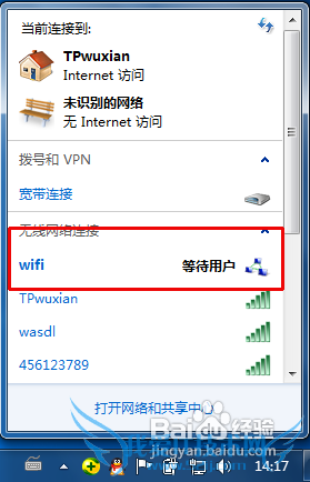 8.设置好后电脑连接网络的地方就有你设的无线WIFI了。如图所示: