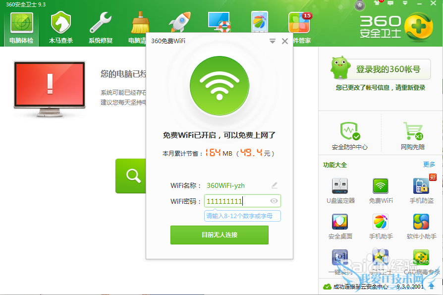然后打开手机wifi功能,进行搜索此wifi,并且输入密码连接。此时电脑右下角还有提示设备接入。