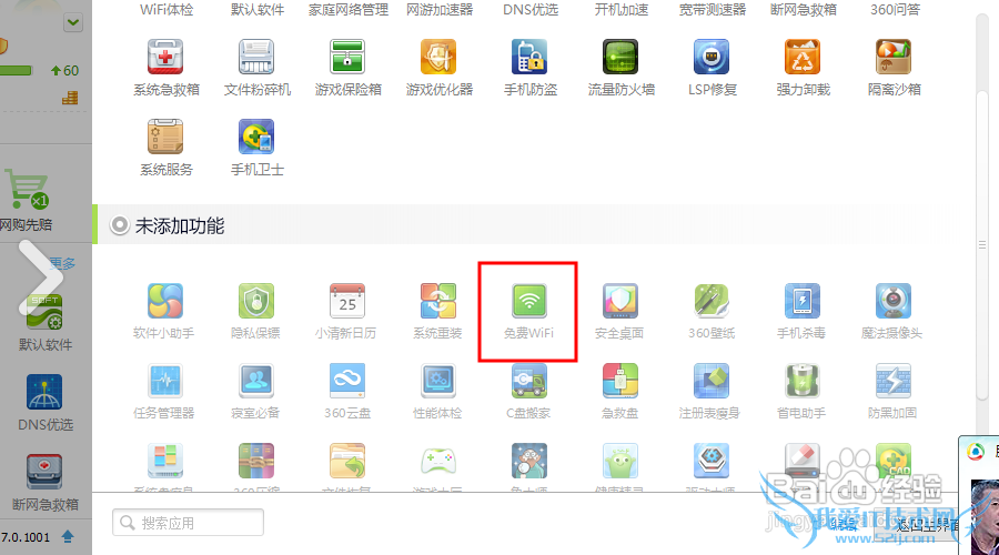 在未添加功能找到《 免费wifi 》点击免费wifi打开