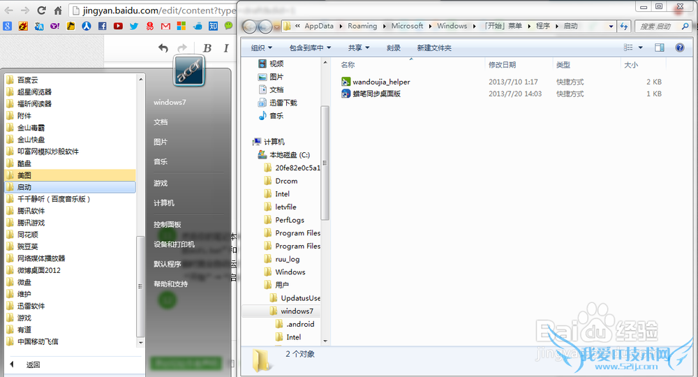 “开始”→“启动”,右击“启动”,点击“浏览”,则打开了一个文件夹。