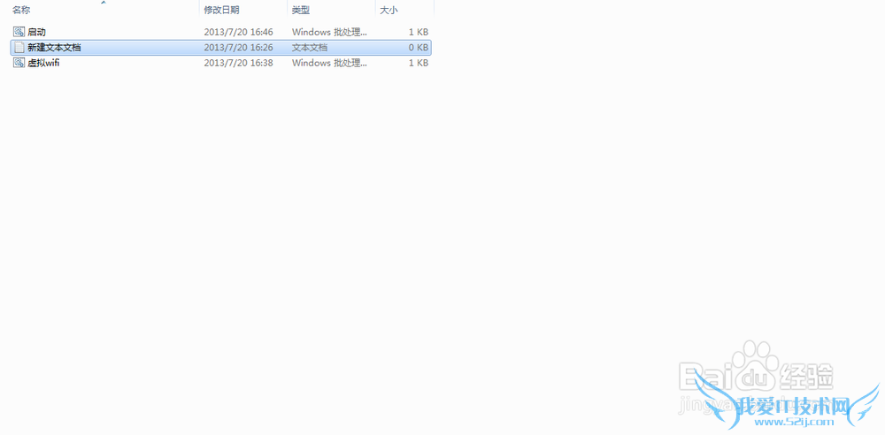 然后,把“新建文本文档”删掉,只留下“虚拟wifi.bat”和“启动.bat”这两个Windows批处理文件。