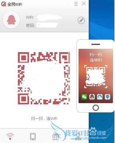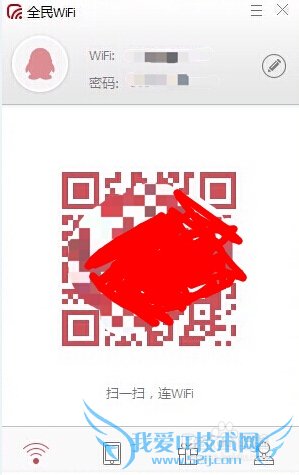 1.当界面出现提醒告诉我们WiFi创建成功之后,就可以看到全民WiFi的主界面有一个鲜红的二维码映入眼帘。
