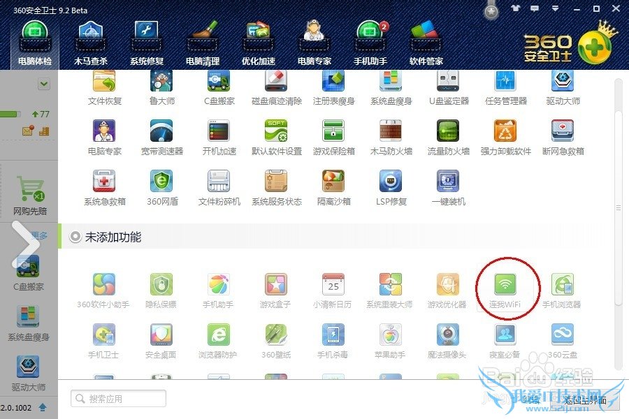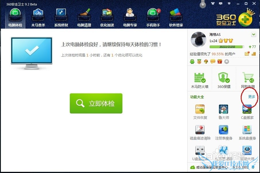 首先打开360 升级到最高版本 点击功能大全的 更多