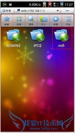 3、打开共享服务器,打开“192.168.1.1”,选择“mifi”;