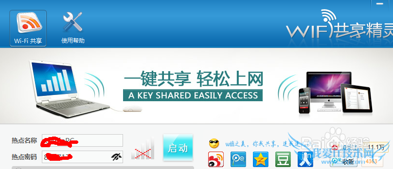 第一步:下载好WiFi共享精灵,可以在百度上搜索,或是用360软件助手,打开。就用版本说明,热点名称和密码自己设置,按照字符要求即可。