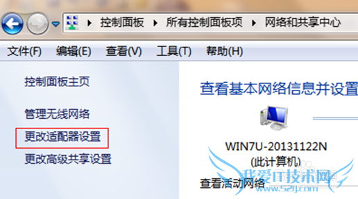 第二步:依次点击“开始—控制面板—网络和共享中心,可以看见下边这样的界面。点击“更改适配器设置”。