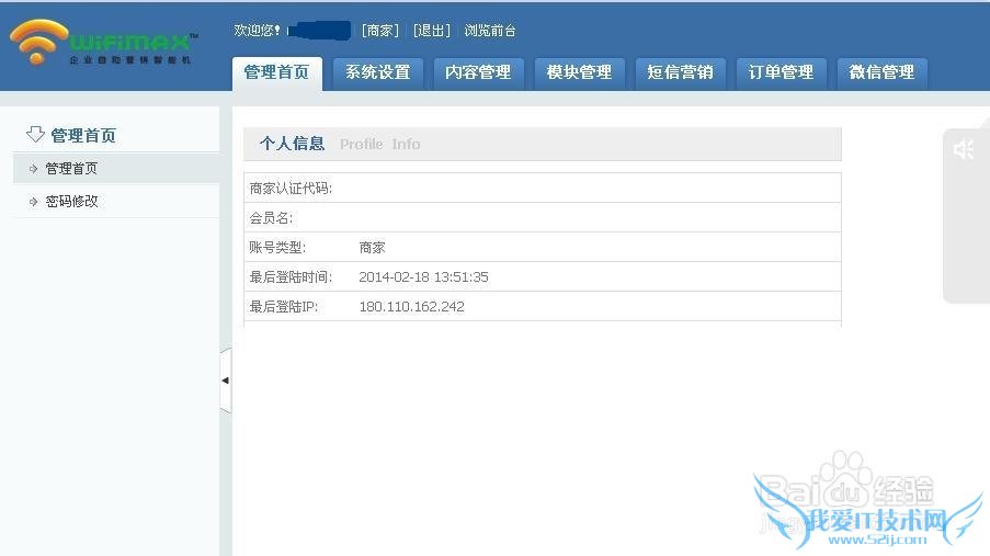 接着在用户名和密码对话框内输入商家的账号和密码,进入商家管理后台。如图所示: