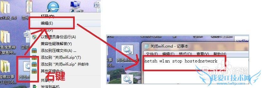 请参照第五步,在桌面上新建一个【新建文本文档.txt】,然后再改名为【关闭WiFi热点.cmd】,右键【编辑】