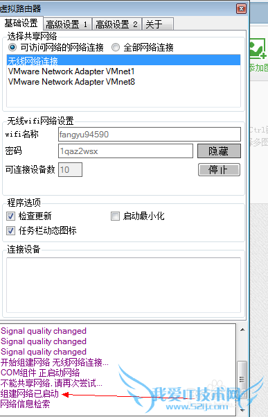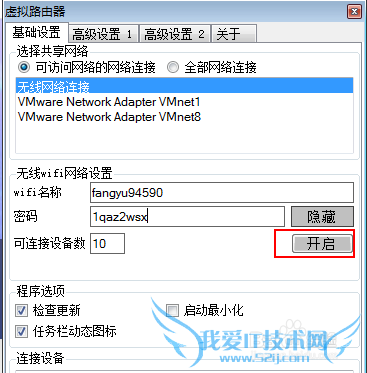 上面显示的是你的有网络连接的网卡,找到你实际上网的那个网卡,如果是用网线的一般就是“本地连接”,选中之后在wifi名称,密码框里随便写上名称,密码。然后点击开启。