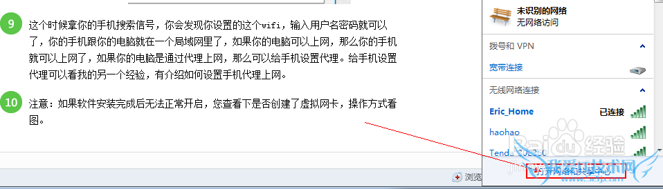 这个时候拿你的手机搜索信号,你会发现你设置的这个wifi,输入用户名密码就可以了,你的手机跟你的电脑就在一个局域网里了,如果你的电脑可以上网,那么你的手机就可以上网了,如果你的电脑是通过代理上网,那么可以给手机设置代理。给手机设置代理可以看我的另一个经验,有介绍如何设置手机代理上网。