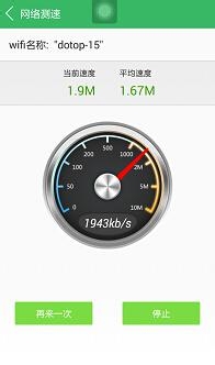 3.7.3、网络测速:点击测速开始测。显示当前速度,以及平均速度。15秒后结束测试,也可以手动点停止: